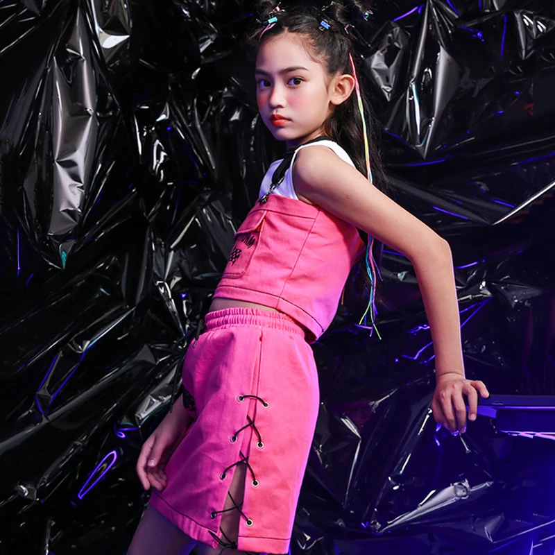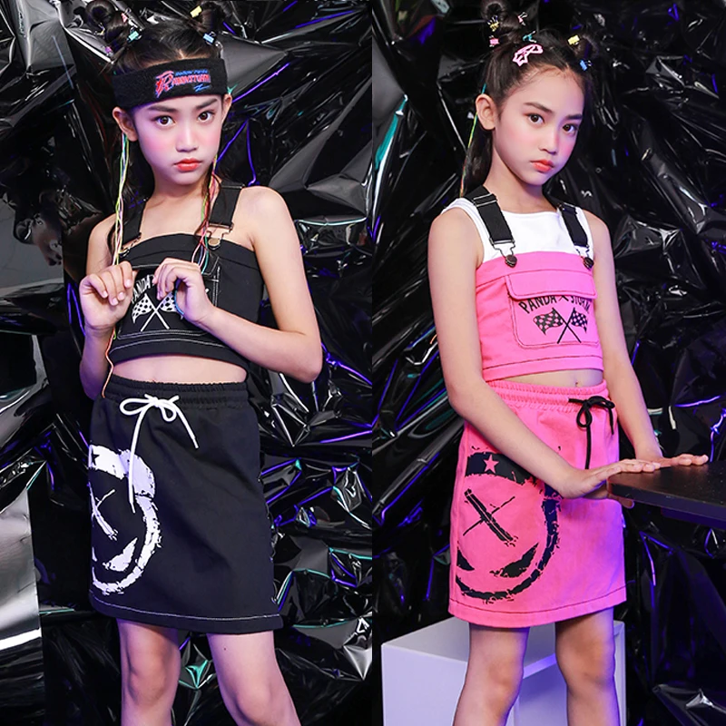 Jazz Dance Costumes Denim Vest Skirt Girls Cheerleader Costume For Kids Street Dancing Clothes Stag