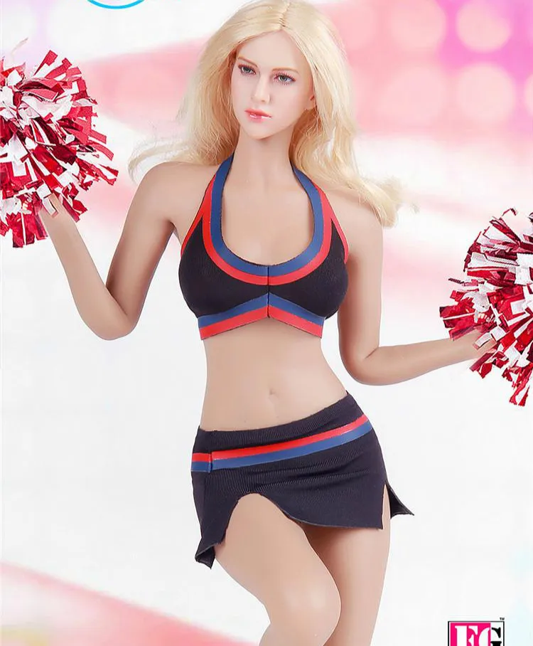 Four Colors 1/6 Fire Girl Toys Black Cheerleading Skirt Sports Bra Dress Clothes Set for 12'' Big C